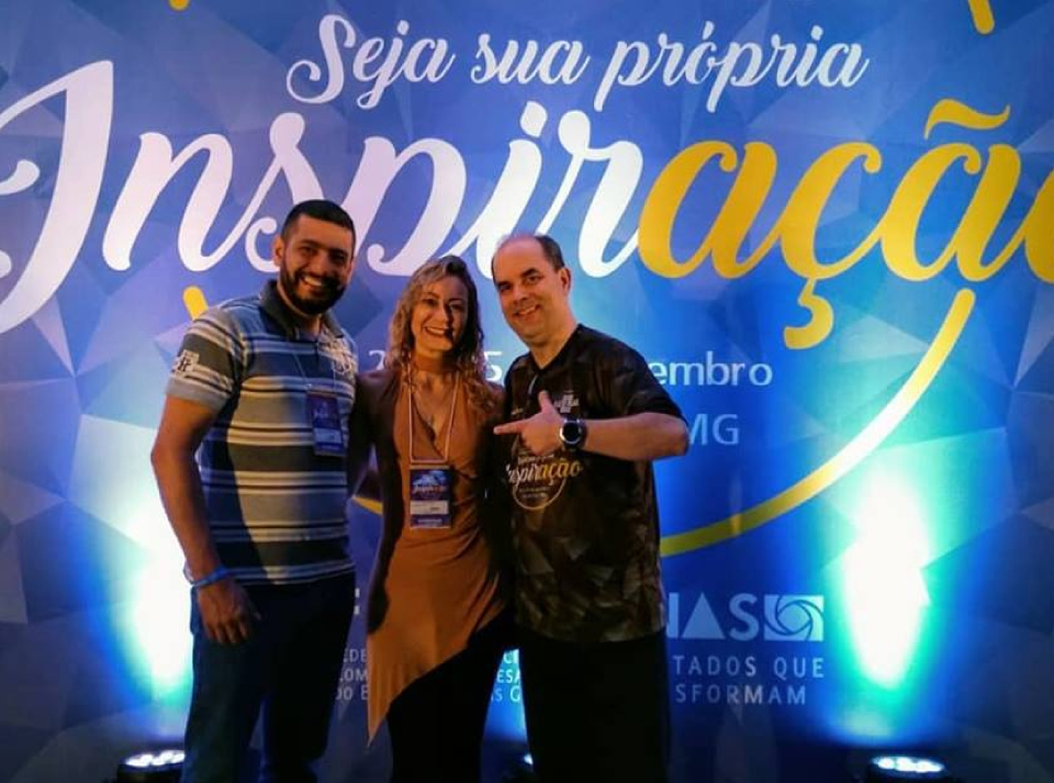 Presidente da Associação Comercial e Empresarial de Muzambinho, Téia Dias, Fábio Cardoso, do departamento financeiro da ACEM e Emílio Parolini, presidente da FEDERAMINAS no XXl congresso Federaminas.