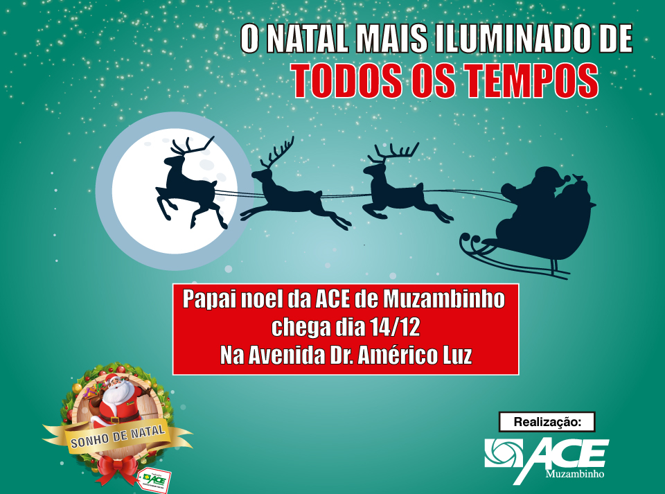 A chegada do Papai Noel da Associação Comercial e do comércio de Muzambinho vai ser no dia 14 de Dezembro na Avenida Dr. Américo Luz!