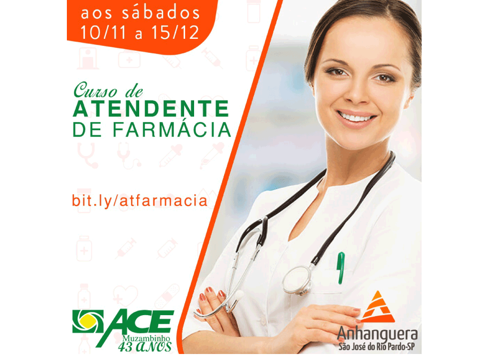 A PHD Cursos Preparatórios, Anhanguera São José e a Associação Comercial de Muzambinho promovem o curso de Atendente de Farmácia.