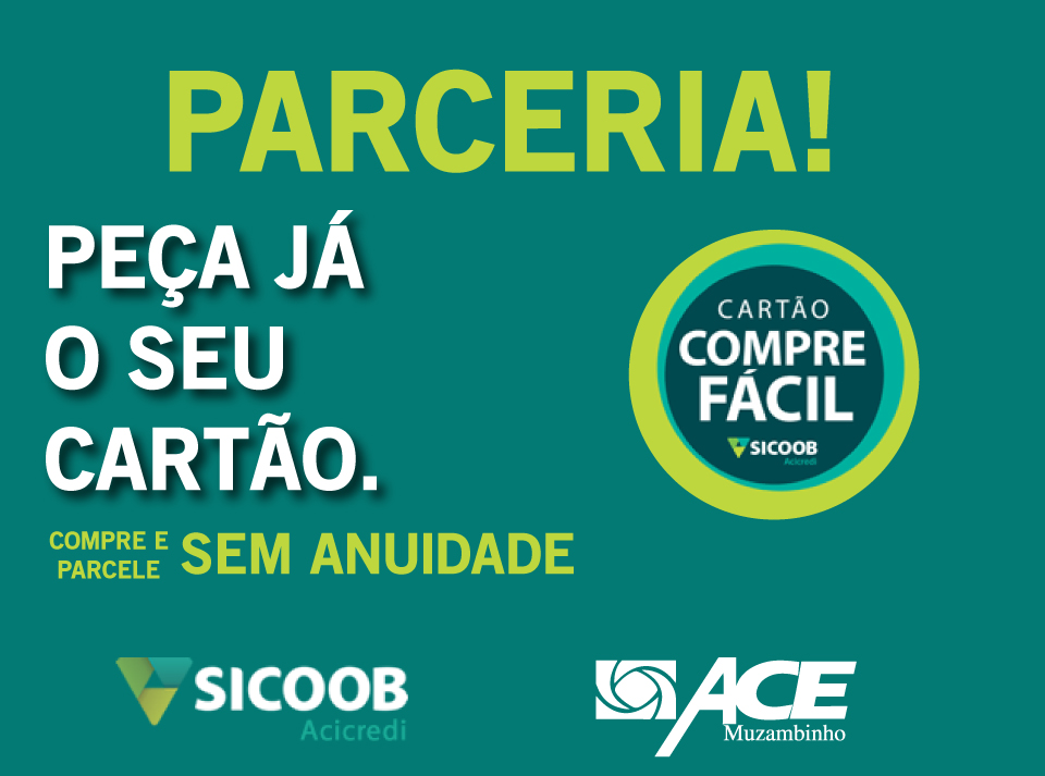 Conheça o cartão #CompreFácil - Uma Parceria ACE Muzambinho e Sicoob Acicredi! Peça já o seu na Associação Comercial de Muzambinho (Av. Dr. Américo Luz, 245, sala 02, centro - Muzambinho/MG.