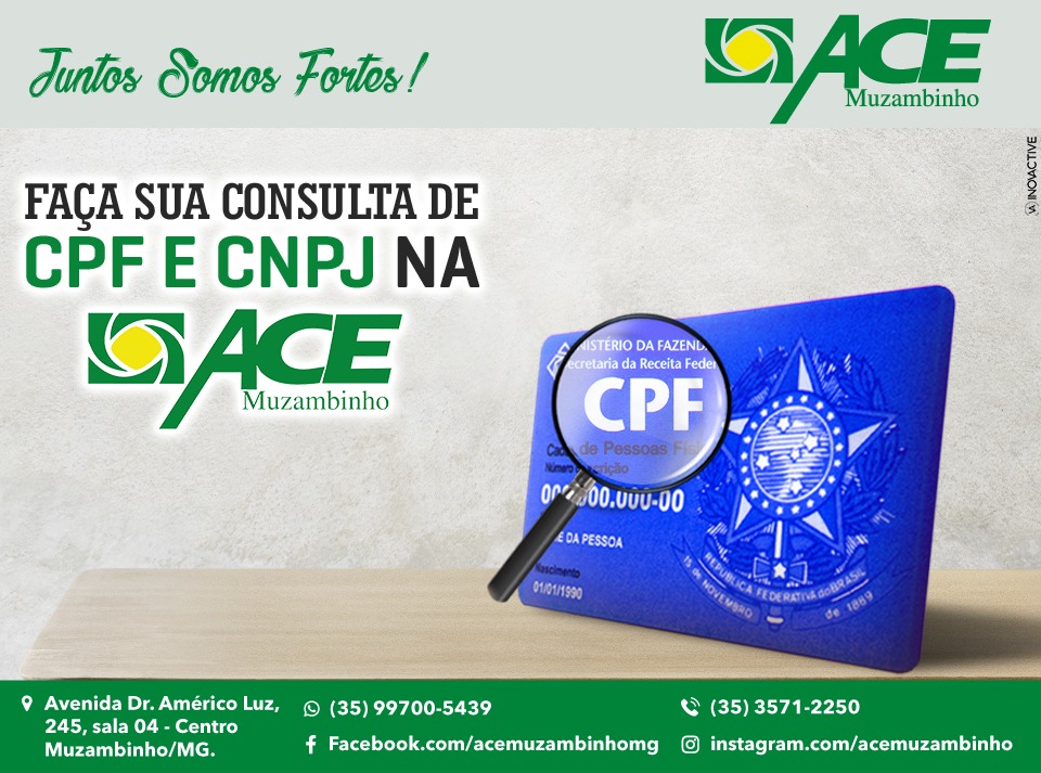 A Associação Comercial e Empresarial de Muzambinho realiza consultas no banco de Inadimplentes da Serasa para pessoa física e jurídica!