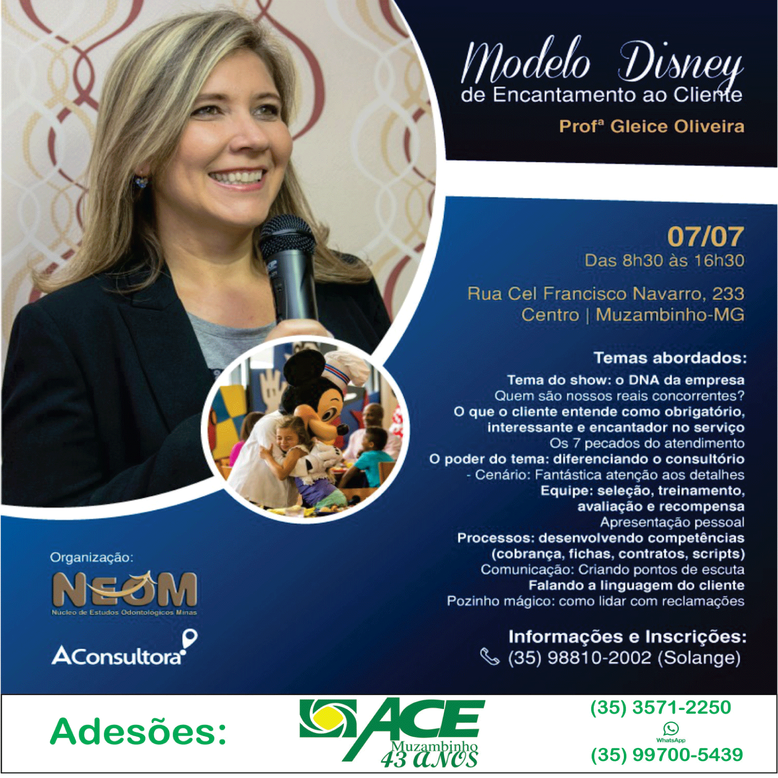 Maiores informações e inscrições na ACE Muzambinho (Av. Dr Américo Luz, 245, sala 02 , centro - Muzambinho/MG) , telefone: (35) 3571-2250 e/ou (35) 99700-5439.