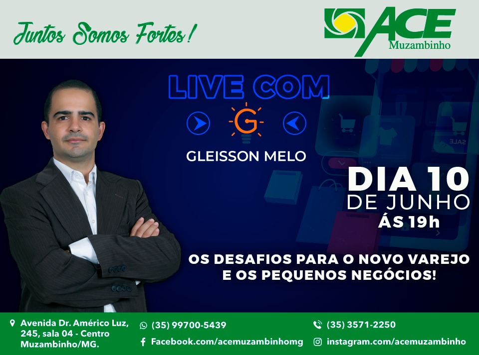 Super Live com Gleisson Melo na página do "face" da ACE Muzambinho fb.com/acemuzambinhomg/