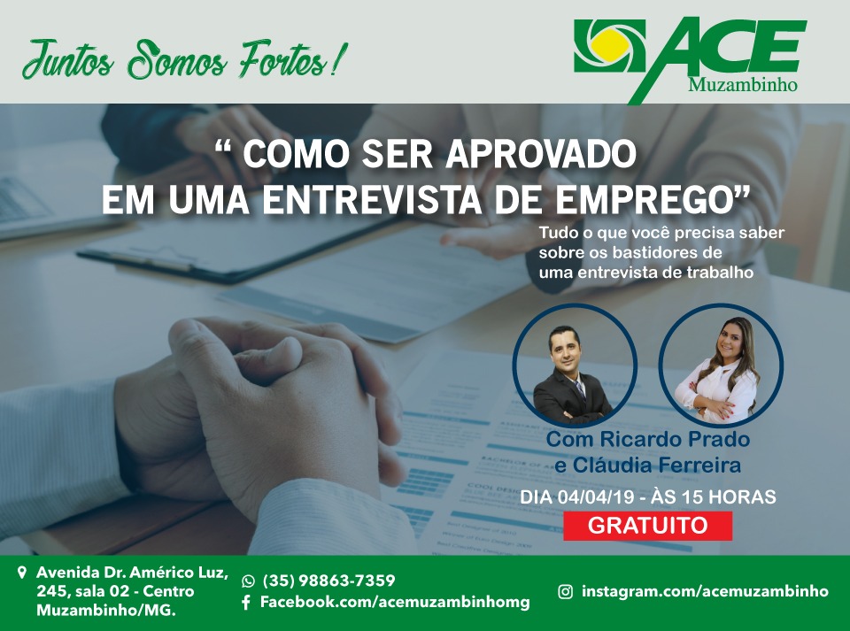 - Local: Ace Muzambinho (Av. Dr. Américo Luz, 245, sala 06, centro, Muzambinho/MG).